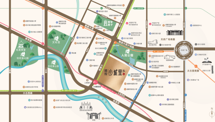 周边商业、教育、医疗、生态资源云集,繁华商圈咫尺可达,满足您购物、休闲、娱乐的一站式需求。